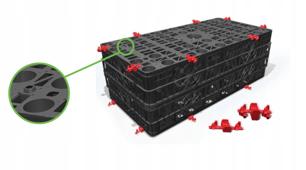 В мире прогрессивной урбанизации вокруг нас все больше и больше зеленых зон. закаляются. Из-за этого дождевой воде трудно проникнуть в почву. Самые большие проблемы, возникающие в результате этого, — это подтопление и недостаток влаги в почве. Благодаря системе фильтрации излишки воды временно собираются и затем просачиваются в землю. Ящики также позволяют выполнить установленную законом обязанность по переработке дождевой воды на собственном участке. Коробчатая система Raibox 3S, обернутая геотекстилем, является отличным решением для инфильтрации зеленых зон, таких как сады и строительные площадки рядом с частными, двухквартирными и рядными домами. Ящики предварительно упакованы в геотекстиль, а благодаря небольшому весу их легко собрать.