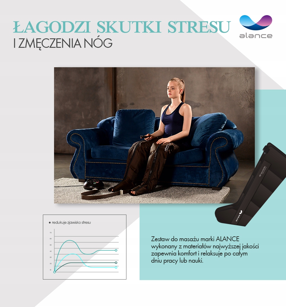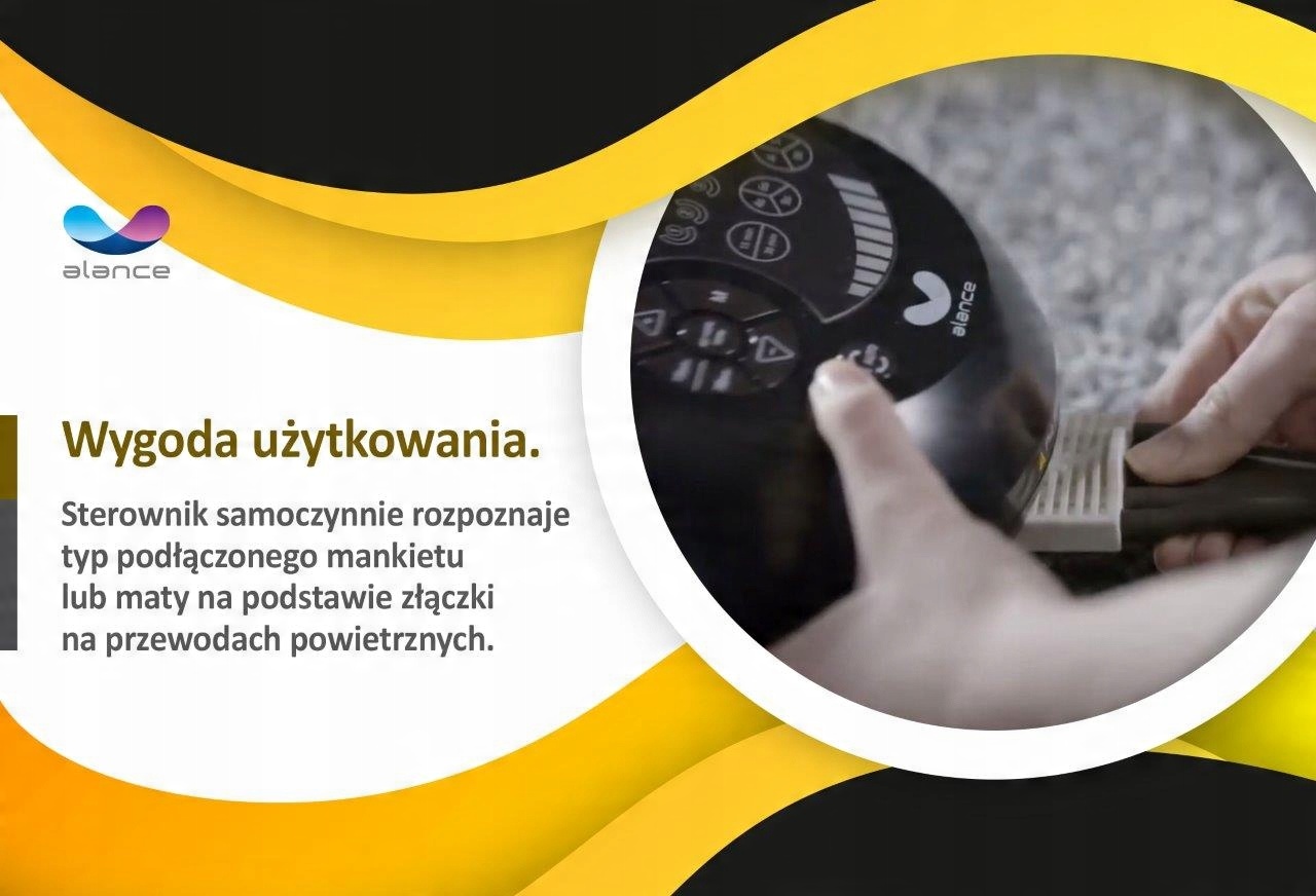 Все наборы и изделия ALANCE совместимы с 5-камерной системой. Для лимфодренажа мы можем выбрать автоматические программы массажа продолжительностью 15 или 30 минут или ручной режим. Контроллер системы позволяет регулировать давление в диапазоне 20-520 мм рт. ст. (8 уровней). Контроллер небольшой и легкий, работает относительно тихо, поэтому во время процедуры вы можете читать книгу или смотреть любимую телепрограмму.
