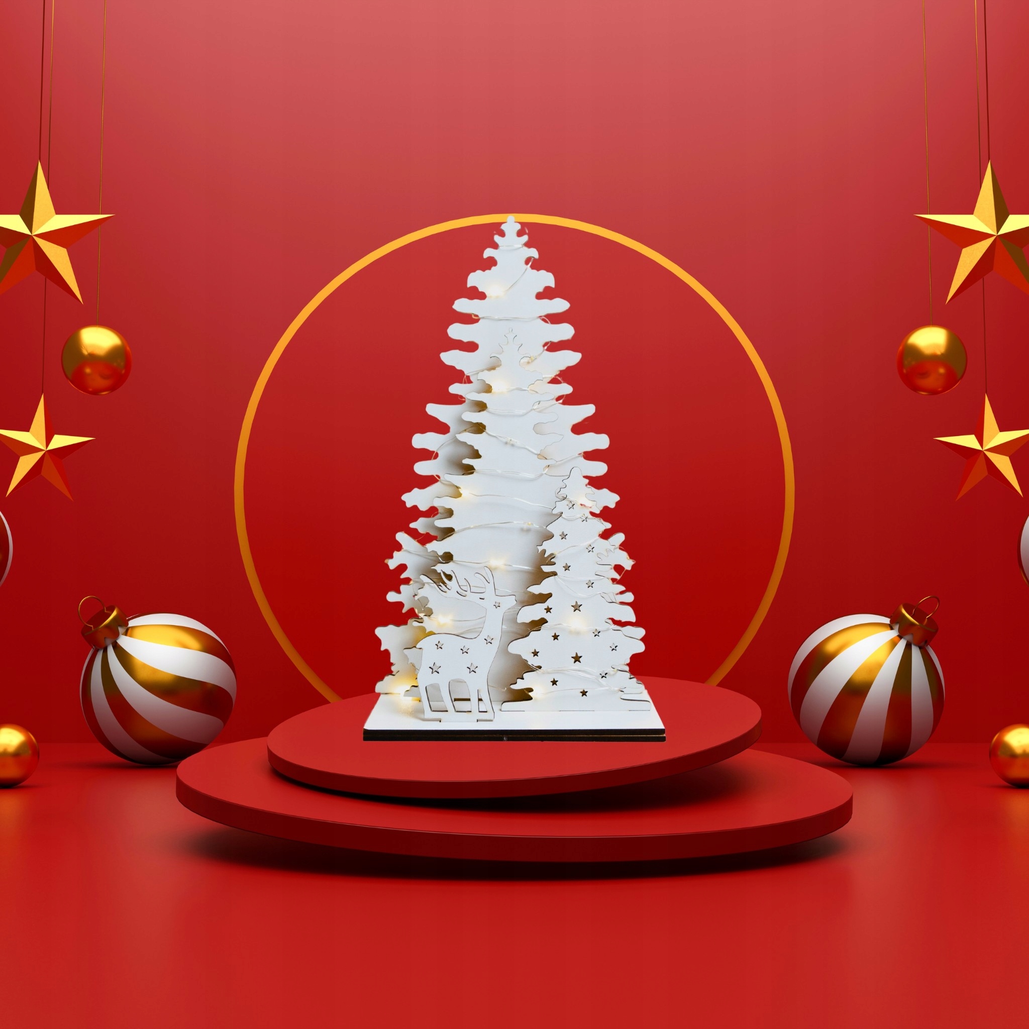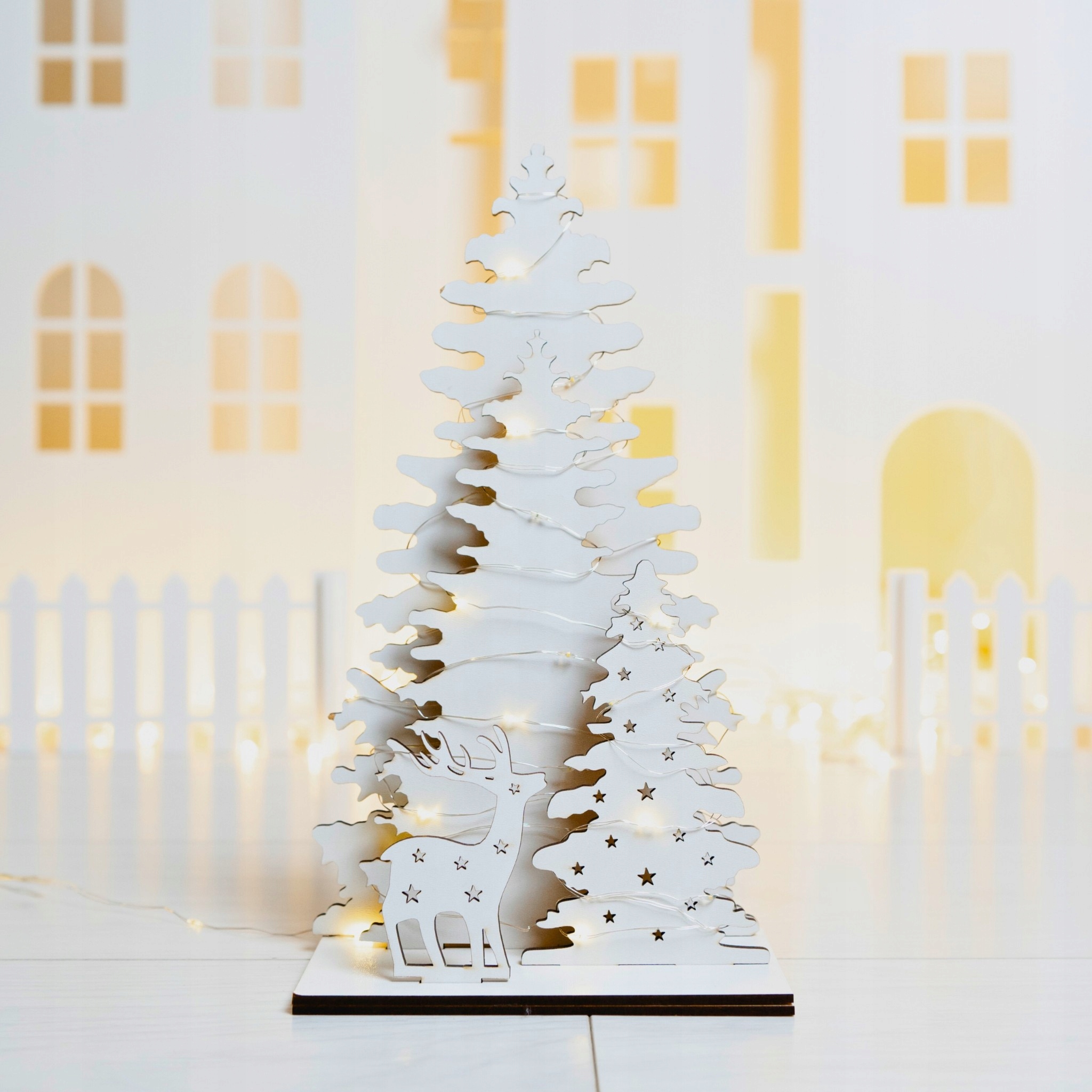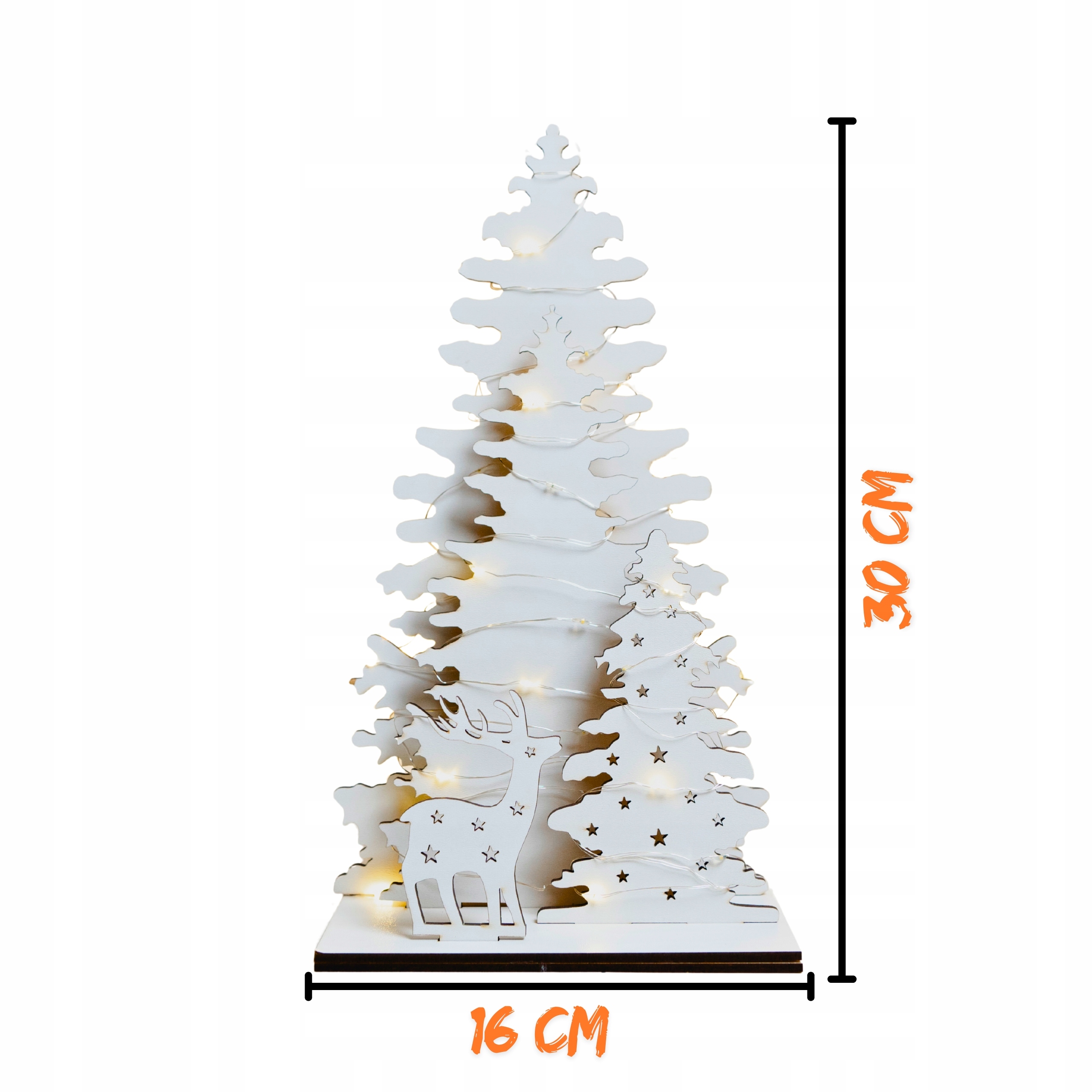 DREWNIANA ŚWIECĄCA CHOINKA LAMPKA LED DEKORACJA ŚWIĄTECZNA JELEŃ 30x16 CM