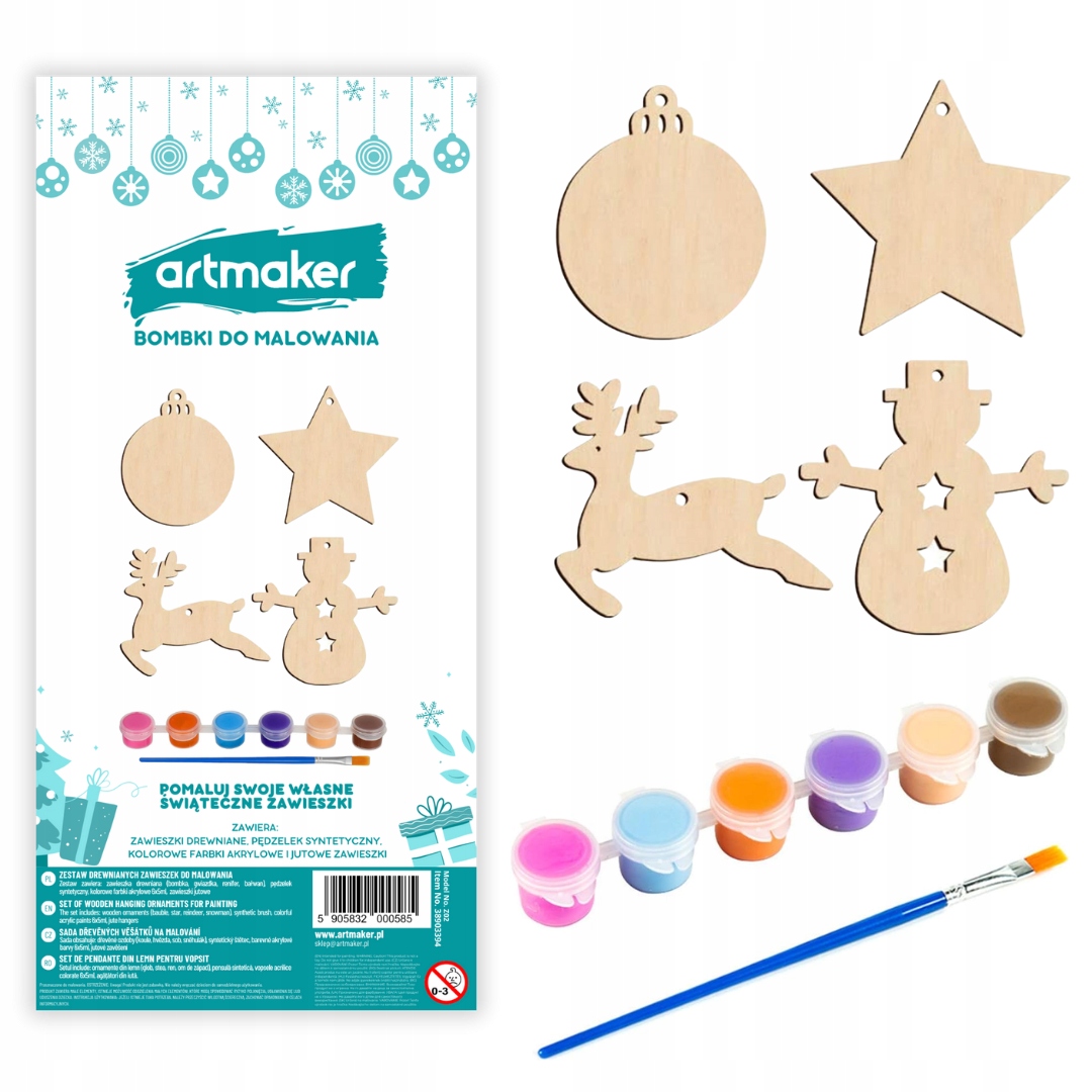 Drewniane Zawieszki Do Malowania Bombki 4szt FARBY Zestaw Kreatywny Prezent