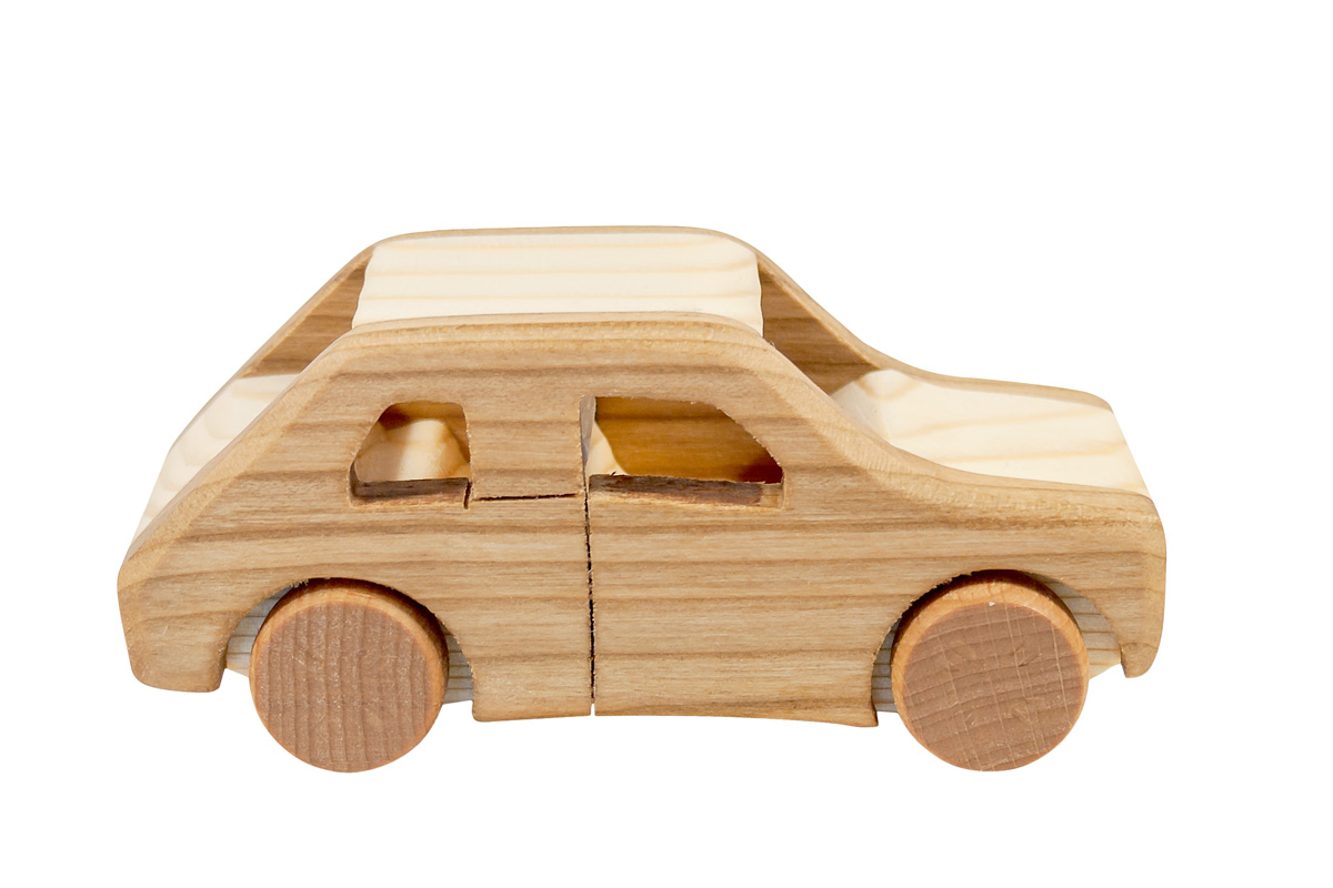 Автомобиль окрашен натуральным льняным маслом - оно защищает от загрязнений, сохраняет и усиливает текстуру дерева.