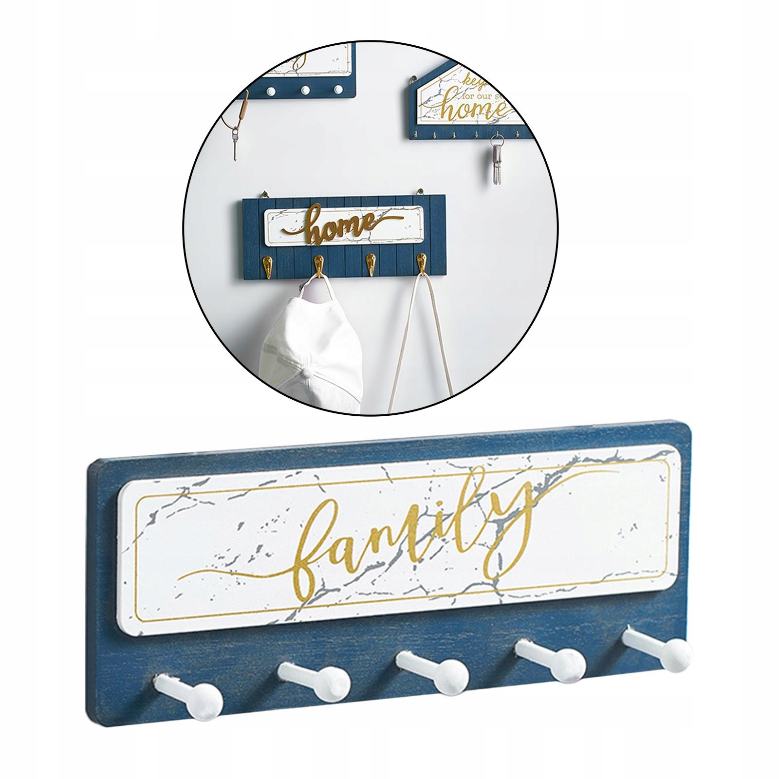 Drewniany znak wiszący z literami i wieszakiem naściennym, 5 haczyków A