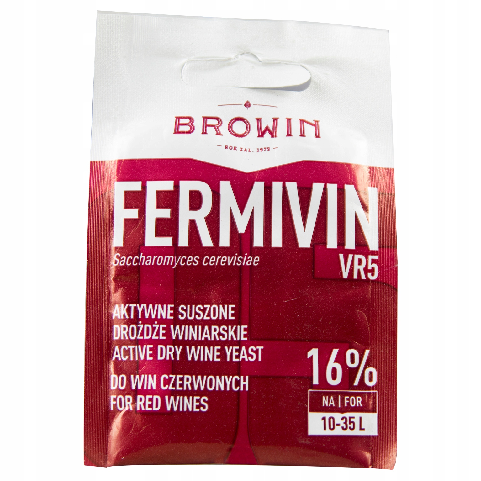 Дрожжи ФЕРМИВИН - активные, сушеные, сильноалкогольные (до 16%), специально отобранные штаммы дрожжей, предназначенные для брожения фруктовых смесей. Они направлены на усиление фруктовых ароматов, используемых для ферментации. В наборе содержится доза ферментов, облегчающих ферментацию фруктов. Упаковка на 10-35 литров фруктовой заготовки.