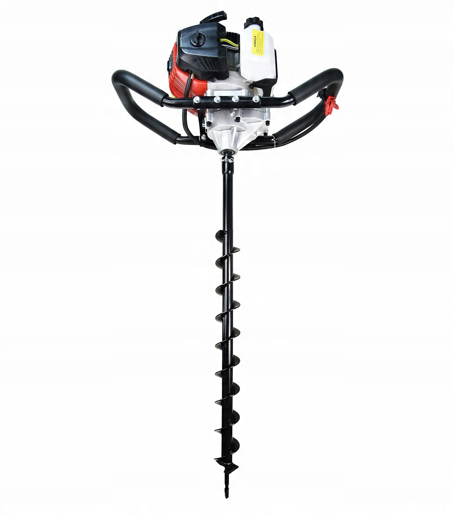 Оснащенная 2-тактным двигателем объемом 52 куб.см и мощностью 6,3 л.с., буровая установка готова без проблем преодолевать различные типы грунтов.