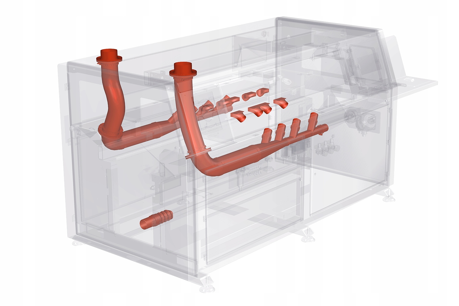 Насадки пылеудаления N.2 диаметром 120 мм и N.1 диаметром 80 мм обеспечивают эффективное удаление пыли даже во время работы. самые сложные фрезерные операции. Подойдут пылесборники производительностью по воздуху Q=750 м3/ч.