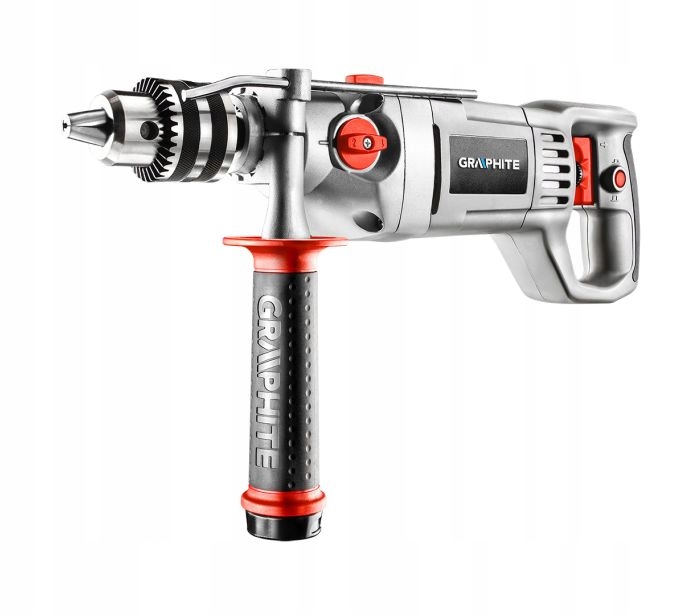 Высококлассная двухскоростная ударная дрель ГРАФИТ (арт. 58G712) с мощным двигателем мощностью 1050 Вт, надежная для сверления отверстий в дереве, металле, керамике и пластике. После переключения в ударный режим сверление таких материалов, как бетон или кирпич, также не составит проблем. Максимальный диаметр просверленного отверстия в дереве 40 мм, в бетоне 20 мм и в стали 16 мм. Ключница поддерживает сверла диаметром от 3 до 16 мм.