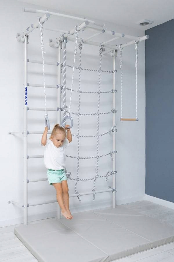 Комета Некст-5 — это вариант пристенной лестницы со сеткой-веревкой, но дополнительно оснащенной горизонтальной лестницей, которая до сих пор была доступна только в модели расширения «Пегас». Неустойчивая сетка для лазания развивает у детей координацию движений и тренирует глубокие мышцы, отвечающие за правильную осанку. Горизонтальная лестница – это настоящее испытание на выносливость и силу рук – возможность почувствовать себя в своей комнате как в джунглях. Следующие комплекты имеют регулируемую перекладину и регулируемые втулки для настенного крепления, что позволяет свободно регулировать высоту их установки.