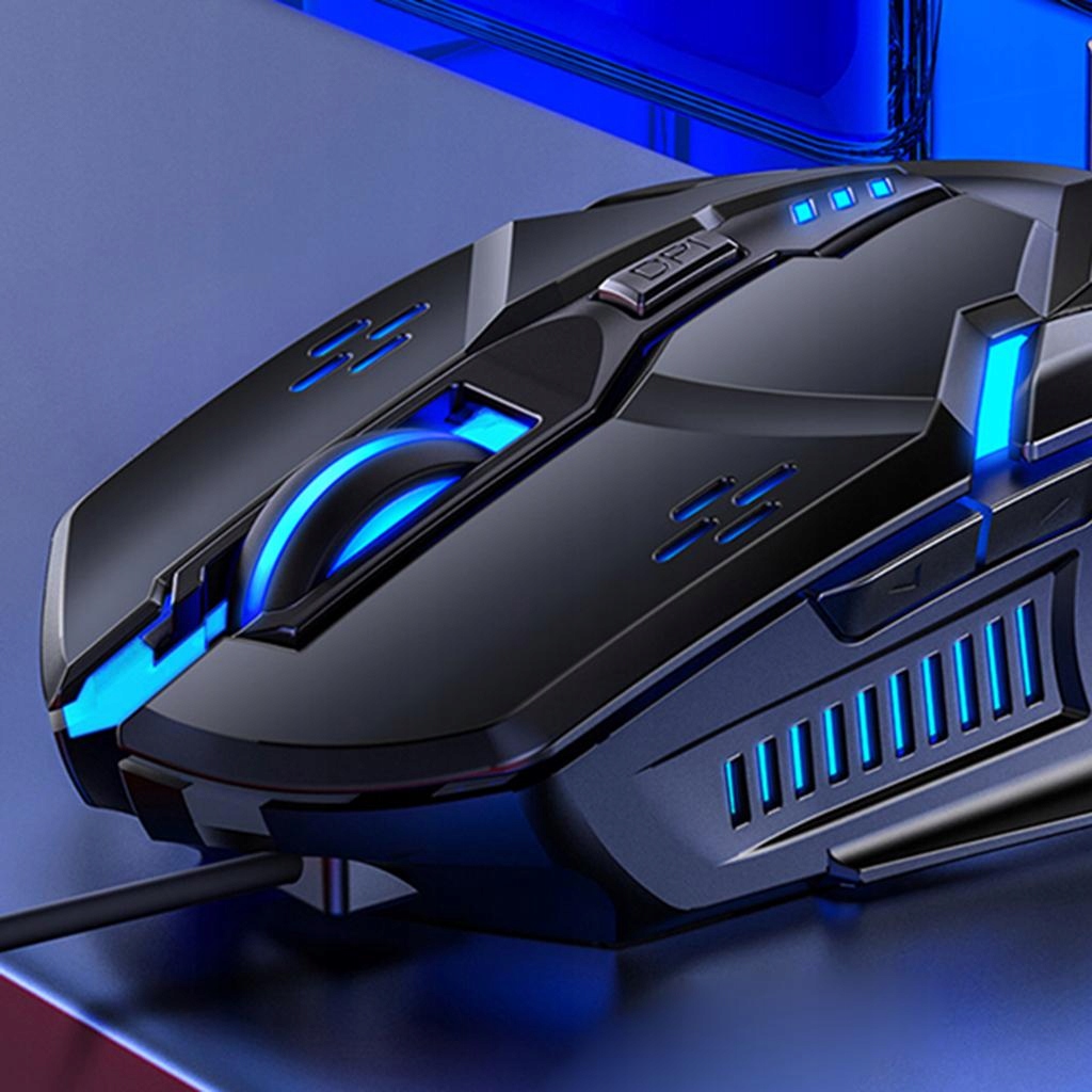 Мышь с проводной игровой мышью с 6D программируемыми 6D -кнопками, отличные светильники RGB в черном
