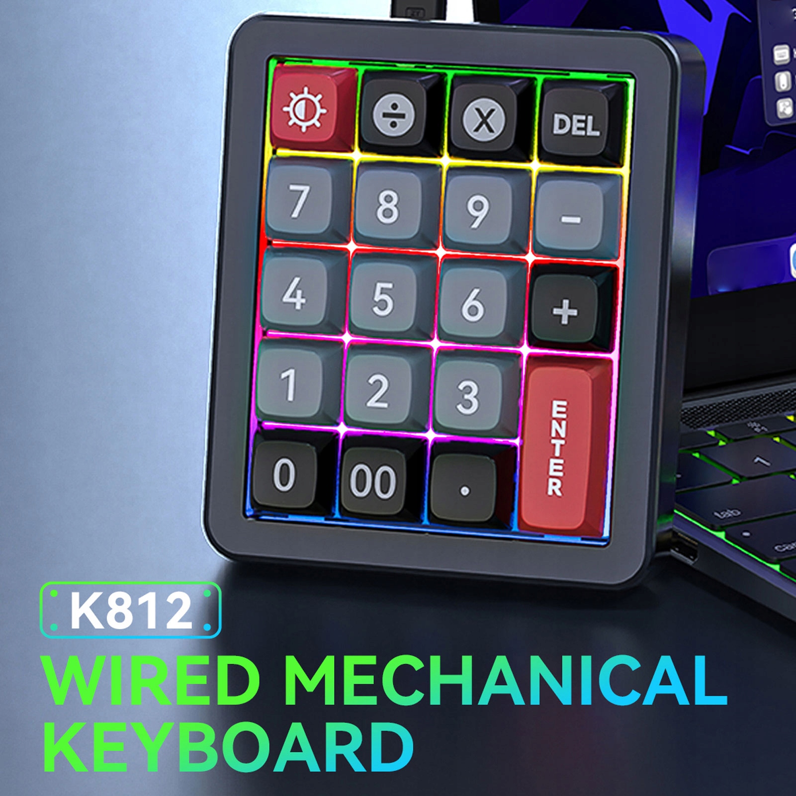 4. 12 светодиодных подсветок RGB. Эта цифровая клавиатура с RGB-подсветкой предлагает до 12 режимов подсветки; После этого нажмите клавишу в углу, чтобы изменить световые эффекты, улучшив эстетику вашего рабочего пространства.