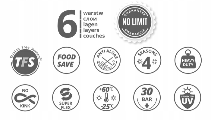 Садовый шланг Профессиональный плюс tfs ™ характеризуется внешним цветом. Параметры утилиты шланга. Транспорт