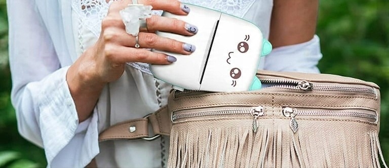 Мини-принтер печатает черно-белые фотографии со смартфона.
