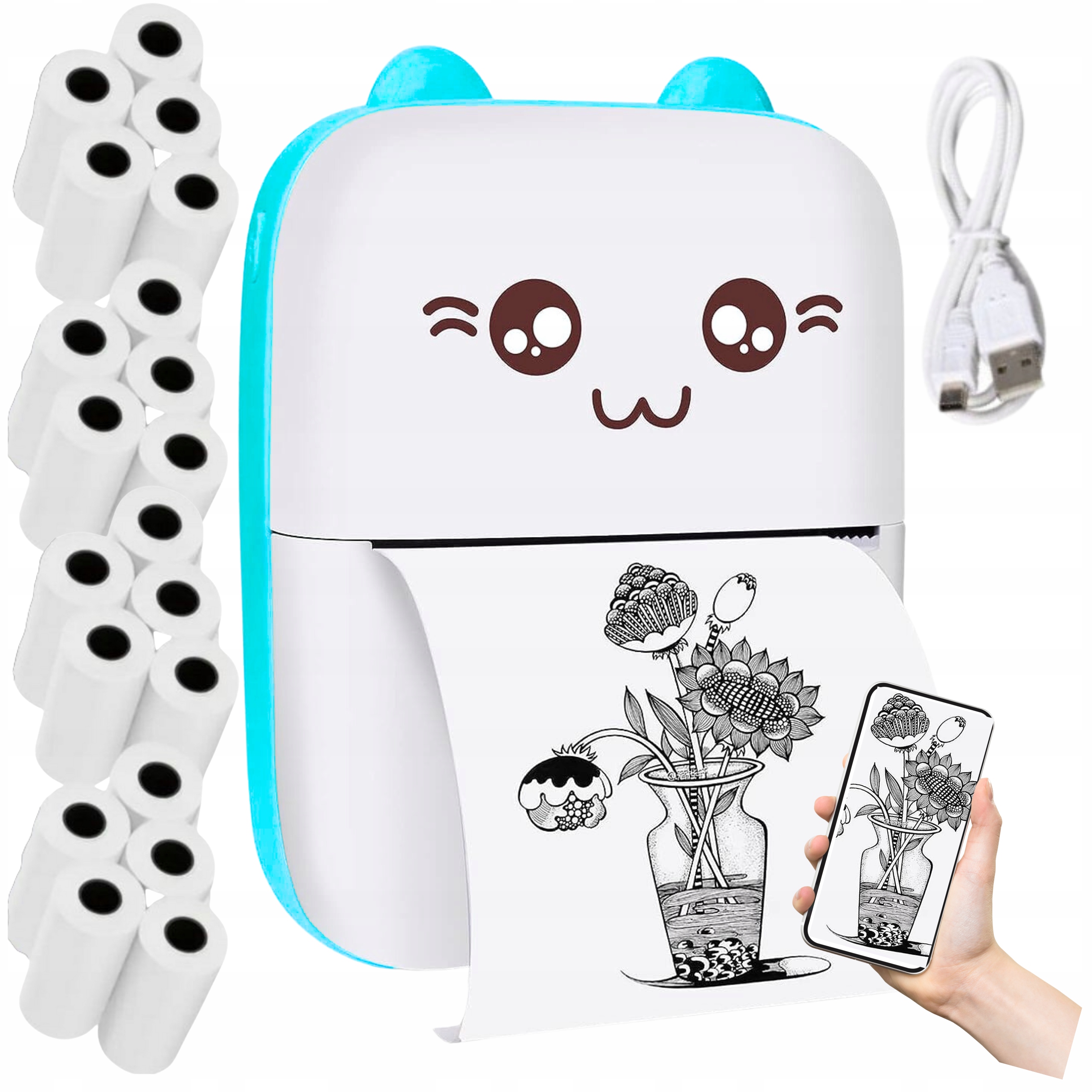 DRUKUŚ ТЕРМОПРІНТЕР MINI CAT BLUE + 20 ШТ. РОЛИКИ