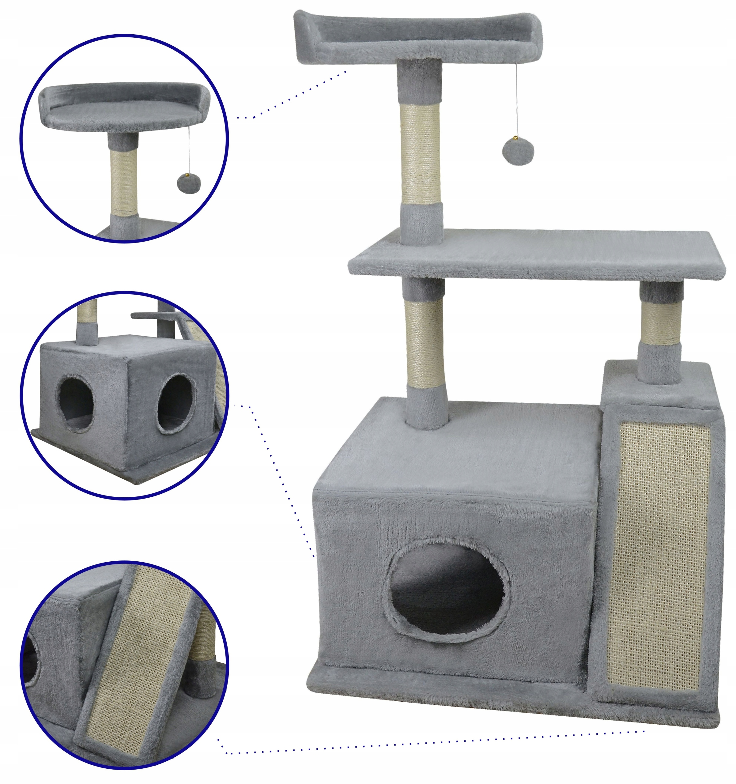 Стабильный и прочный каркас. Столбики покрыты прочной сизалевой веревкой толщиной 4 мм, которая наверняка выдержит множество игр и заточку когтей вашей кошки.