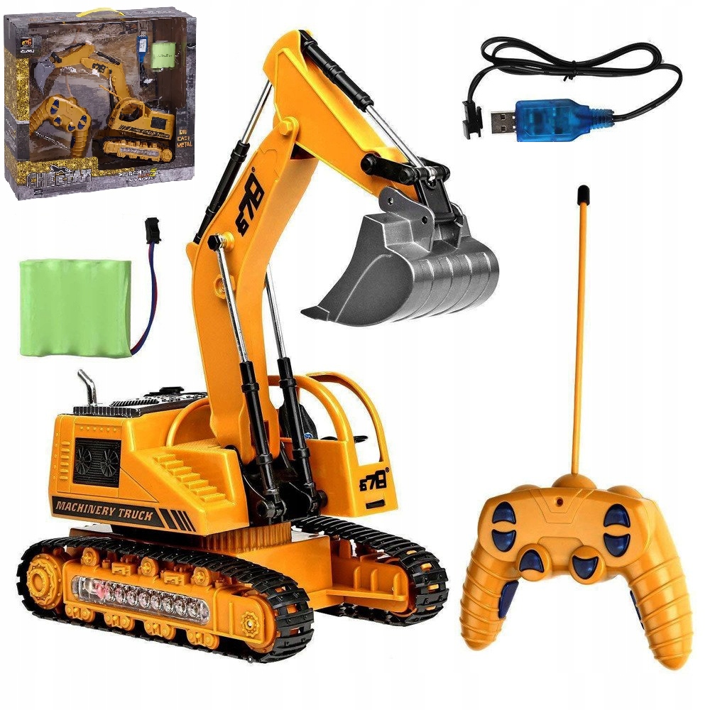 DUŻA KOPARKA ZDALNIE STEROWANA ŚWIATŁO LED PILOT RUCHOME RAMIĘ