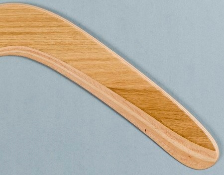 .Метание – рекомендуется только взрослым, опытным метателям. Дальность 30-40 метров в зависимости от силы броска. Размеры бумеранга: 49,5х19,5 см. Фанера берёзовая, однородная, шпонированная дубом, общая толщина около 10 мм.