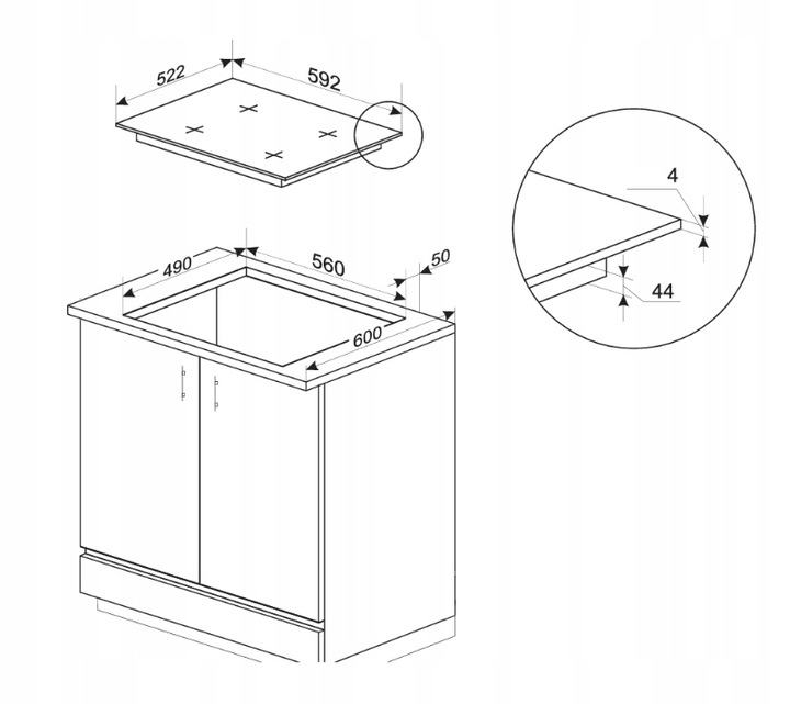 - Минимально необходимое пространство под варочной панелью: 10 мм