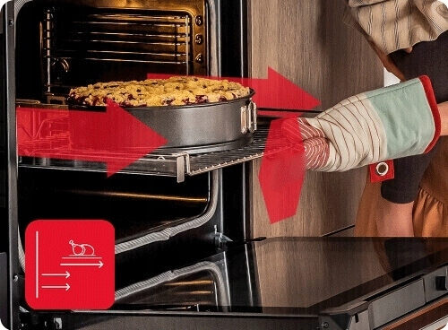 При вытаскивании нагретого подноса с горячей едой можно легко обжечься и есть риск уронить поднос. Не в духовках Amica! Все благодаря направляющим, которые оснащены специальными выпуклостями, замедляющими введение и извлечение. Благодаря им вы сможете в полной безопасности задвигать и выдвигать даже горячий и тяжело нагруженный поднос, без риска ожогов.