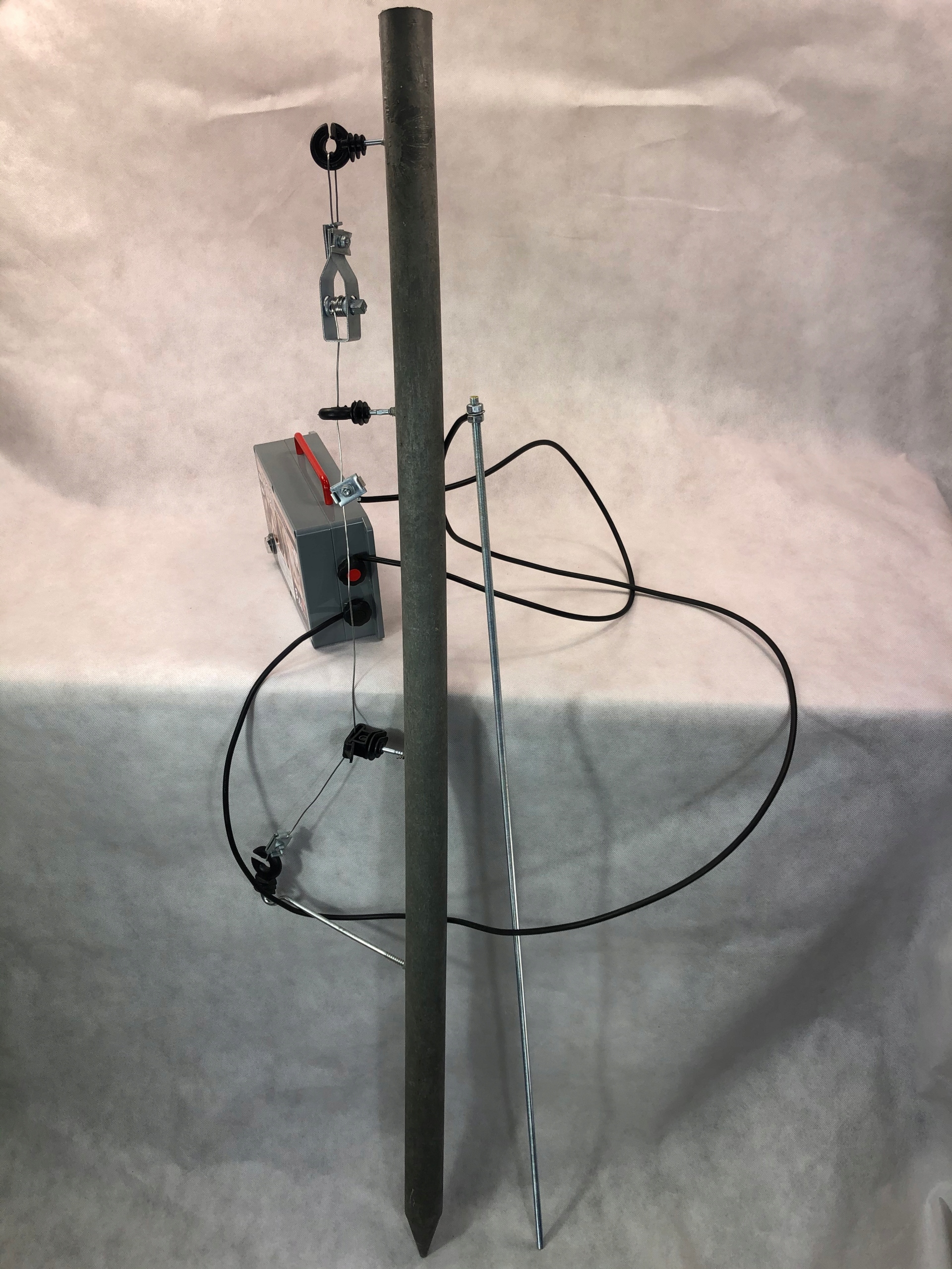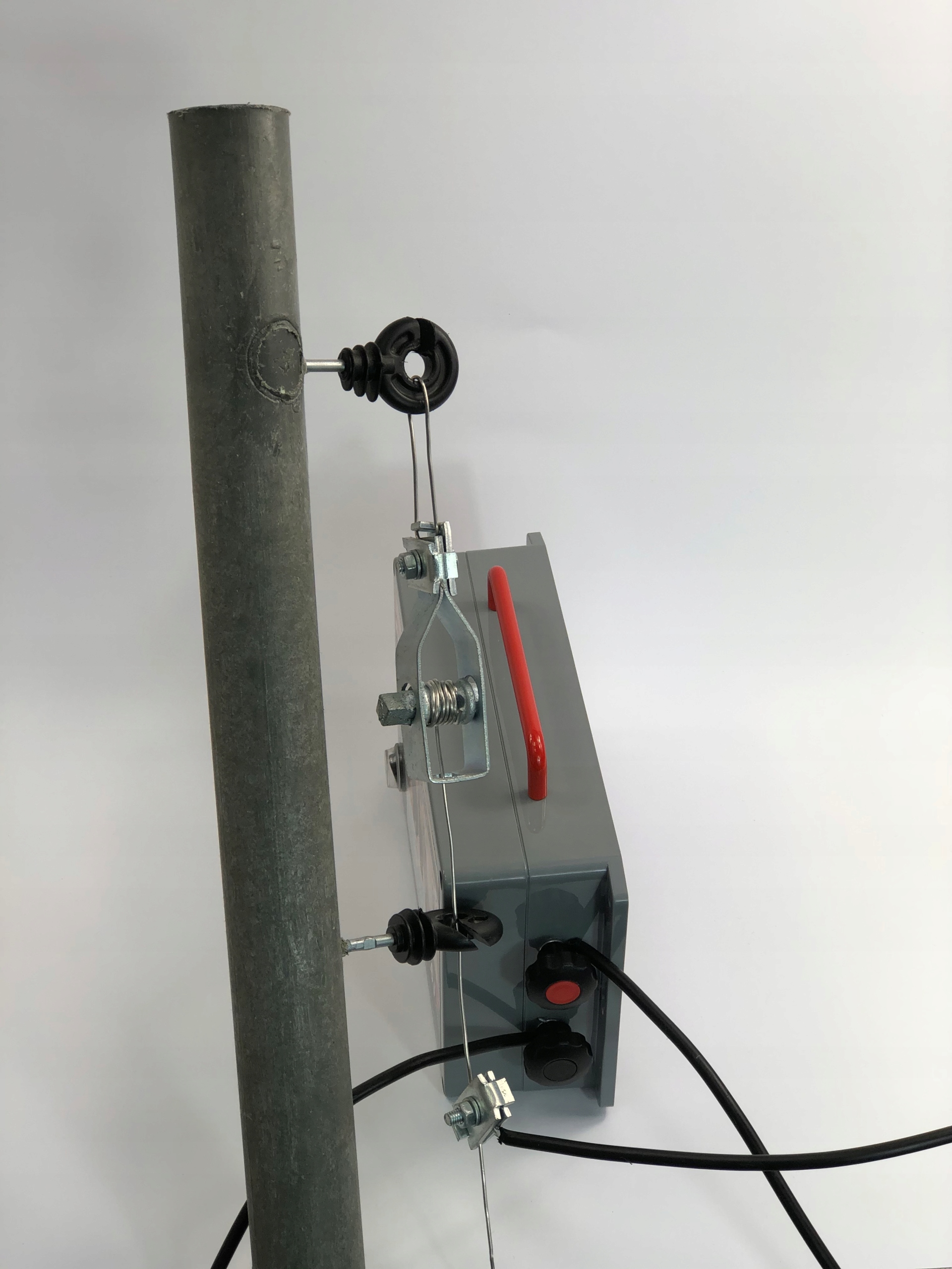 Столб, кабели, заземление, изоляторы, провод, натяжитель, разъем, которые видны на фото, приобретаются отдельно.