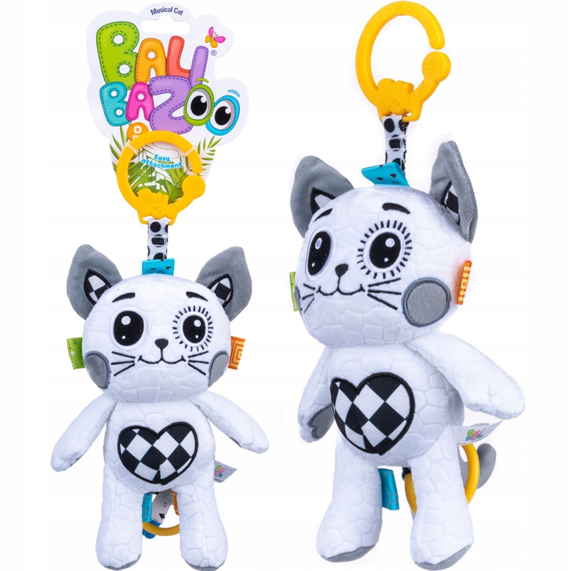 BAL серия IBAZOO - это идеальные продукты для самых маленьких детей, гарантирующие высокое качество и безопасные материалы. Это игрушки, которые дают множество сенсорных впечатлений, а также меняют функциональность в зависимости от потребностей ребенка и опекуна. Подвеска-кошка с музыкальной шкатулкой — большая мягкая игрушка и первый друг малыша. Его можно взять с собой куда угодно и благодаря удобной ручке прикрепить в выбранном месте. Благодаря высокому контрасту цветов и рисунков он будет исключительно стимулировать зрение ребенка с самого рождения, а приятная мелодия музыкальной шкатулки сделает время перед сном более приятным.