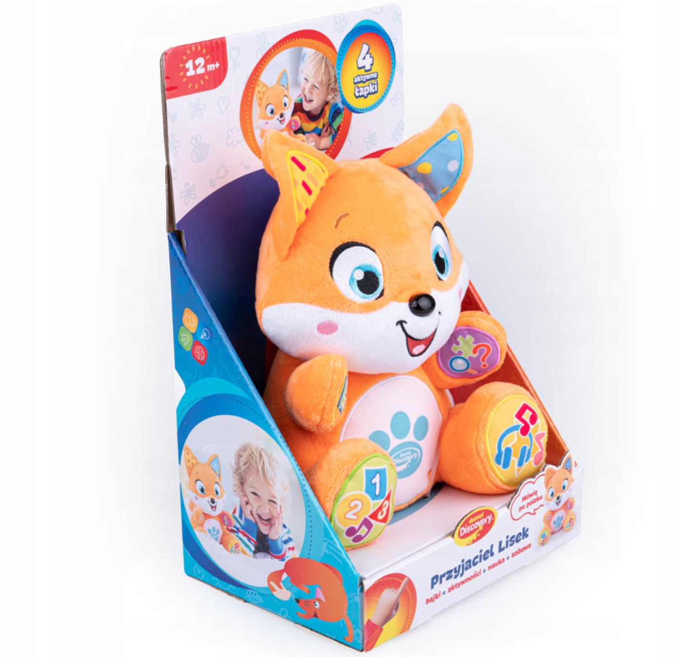 Знаете ли вы, что есть способ перенестись в безопасный мир воображение, не выходя из дома? Крепко обнимите лису и прижмите ее лапы, чтобы вместе с ней открыть для себя чудесные сказочные страны, выучить алфавит, цифры и познакомиться с животными. В каждой лапке плюшевого мишки скрывается свой сюрприз! Помимо сказок, вы также найдете колыбельные, песни на польском языке, стихи и веселые фразы. Малыш всегда может иметь с собой плюшевого мишку. Днем плюшевый друг обеспечит ему веселое развлечение, а вечером расскажет сказку или сыграет на ночь сладкую колыбельную.