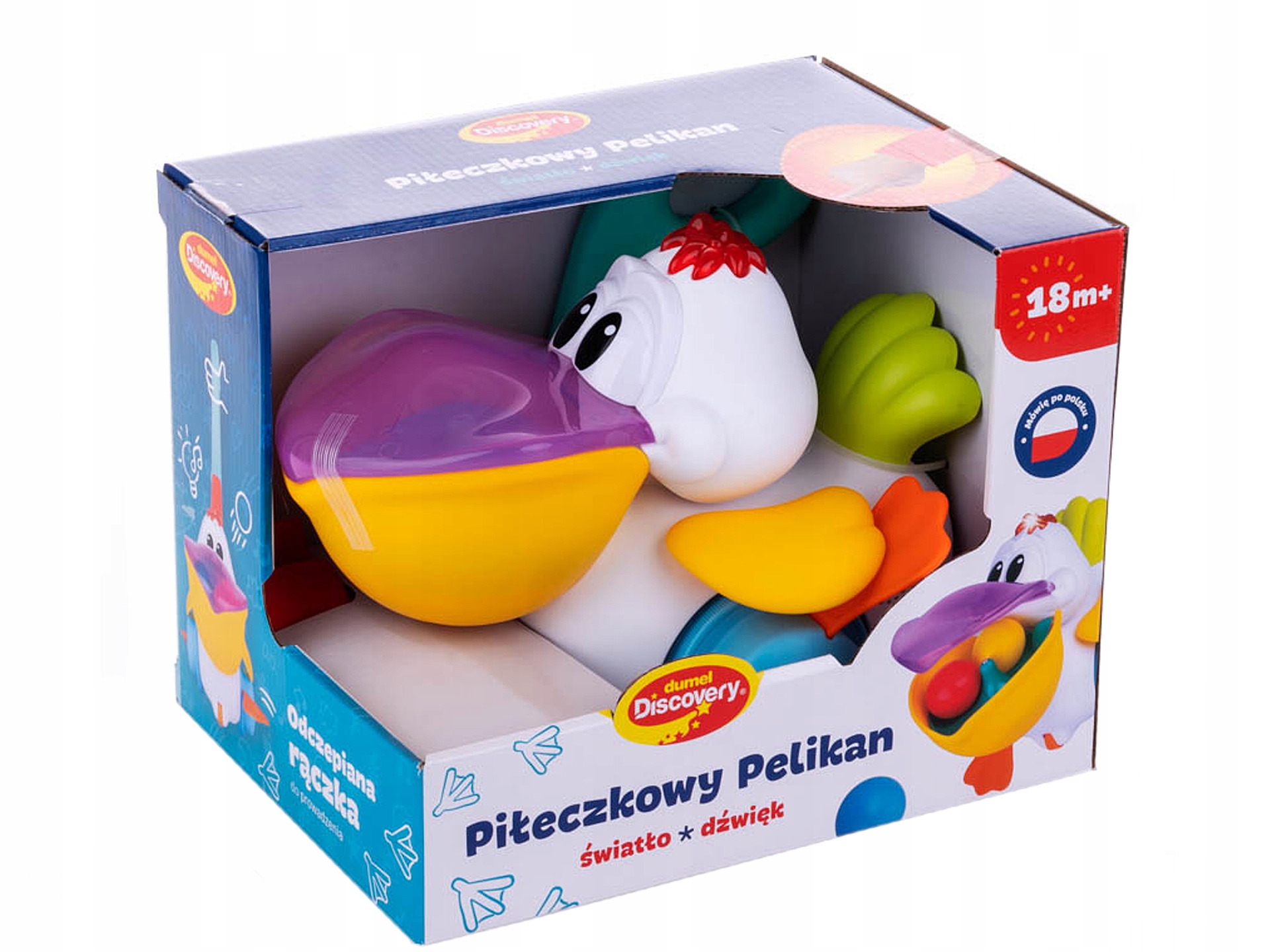 Собирайте шарики вместе с веселым Пеликаном. Веселье становится еще приятнее благодаря звукам песни на польском языке и мигающему свету.