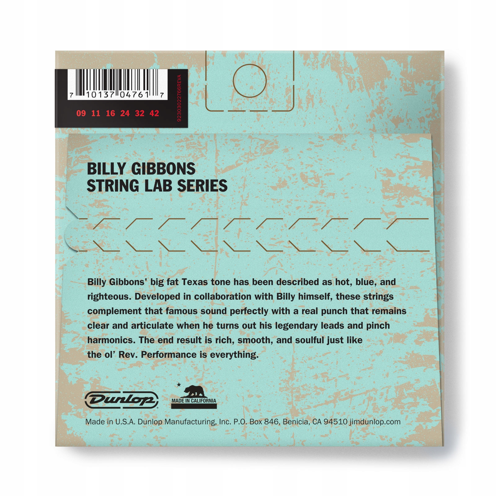 , расположенный в Бенисии в солнечной калифорнийской Dunlop Производство, непрерывно производит аксессуары высочайшего качества и гитарные эффекты с 1965 года. Благодаря введению его самых популярных Wah -Wah Pry Beab Dunlop сотрудничает с самыми большими музыкальными звездами, такими как: Zakk Wylde, Kerry King, Robert Trijillo или Slash в течение многих лет, основываясь на их опыте оборудования высочайшего качества для гитаристов по всему миру. Результатом этого сотрудничества очень деликатные, чувствительные к артикуляции строк удивительно тонких размеров. На основе гексагонального ядра, с оберткой, которая до того, как ветер подвергался никелевому процессу - благодаря которой струны устойчивы к грязи, пыли и влаге. Их звук из Техаса прекрасно отражает звук гитары Билли.
