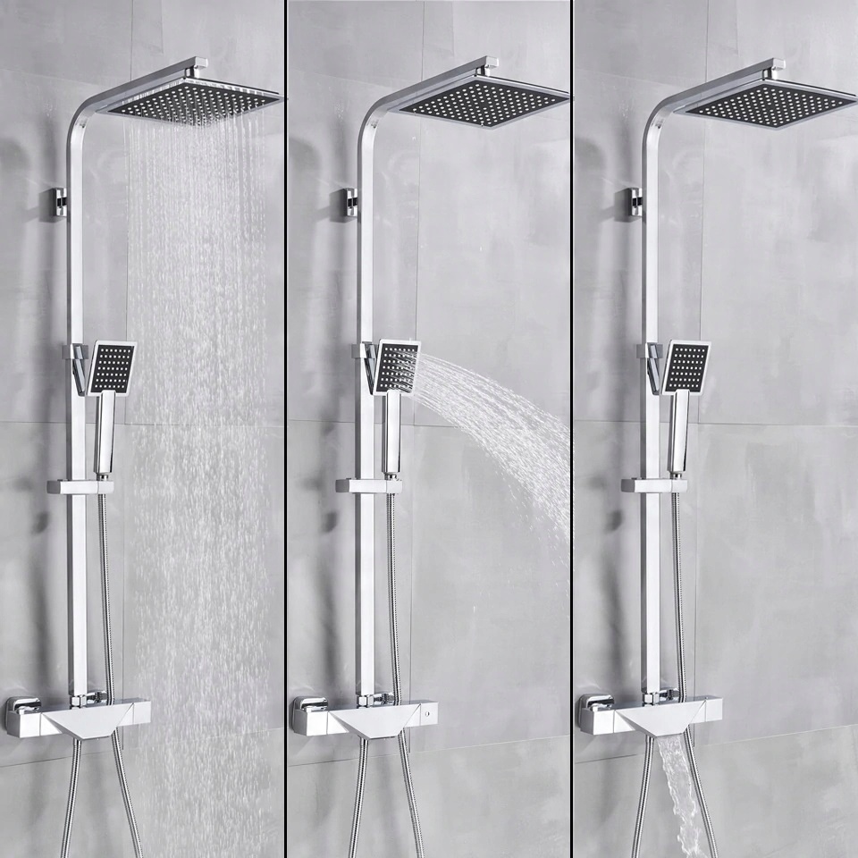 Хром + насадка для душа и смеситель с геометрическим дизайном | ТЕРМОСТАТИЧЕСКАЯ БАТАРЕЯ