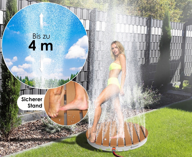 освежающее тепло для всей семьи! Благодаря встроенной ручке в ногах вы можете контролировать высоту фонтана до 4 метров, обеспечивая, чтобы вы и ваши близкие были приятным охлаждением в жаркие дни. Идеальное решение не только для взрослых, но и для детей и домашних животных
