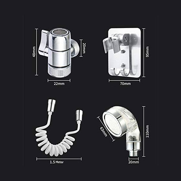 Внешний удлинитель смесителя для универсального использования на кухне и в ванной комнате. . Простая установка со всеми аксессуарами в комплекте (душевая насадка, шланг, держатель, клапан, крепление)