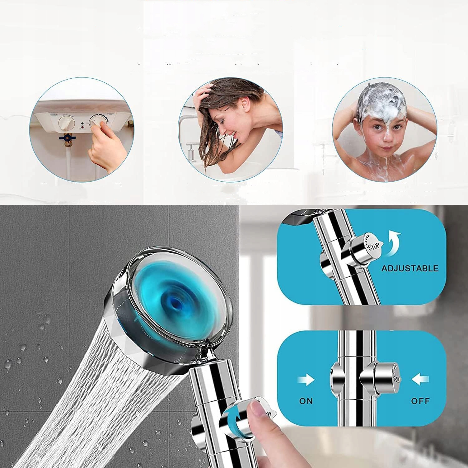 Это энергия -эливальная душевая головка с анти -диамским фильтром. Вы будете не только наслаждаться освежающим душем, но и защищать кожу и волосы.