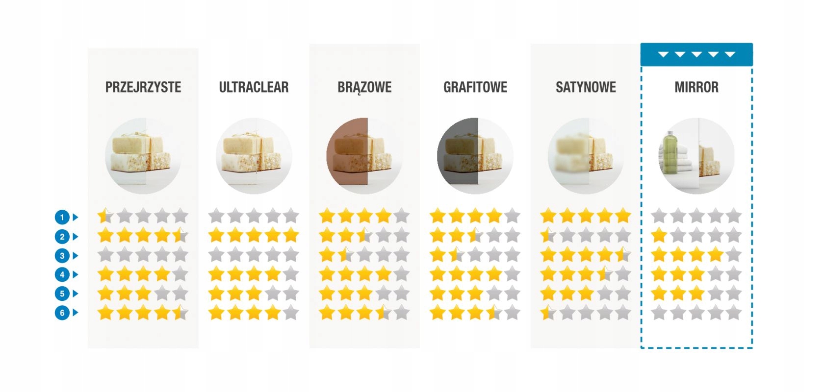 Сравнительная таблица функциональных свойств доступных вариантов стекла
