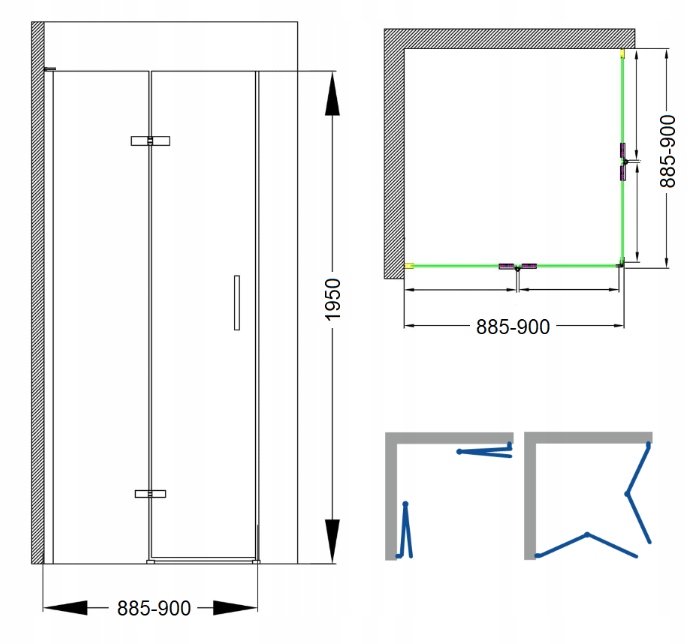 Душова кабіна 90х90 см + низький тонкий душовий піддон
