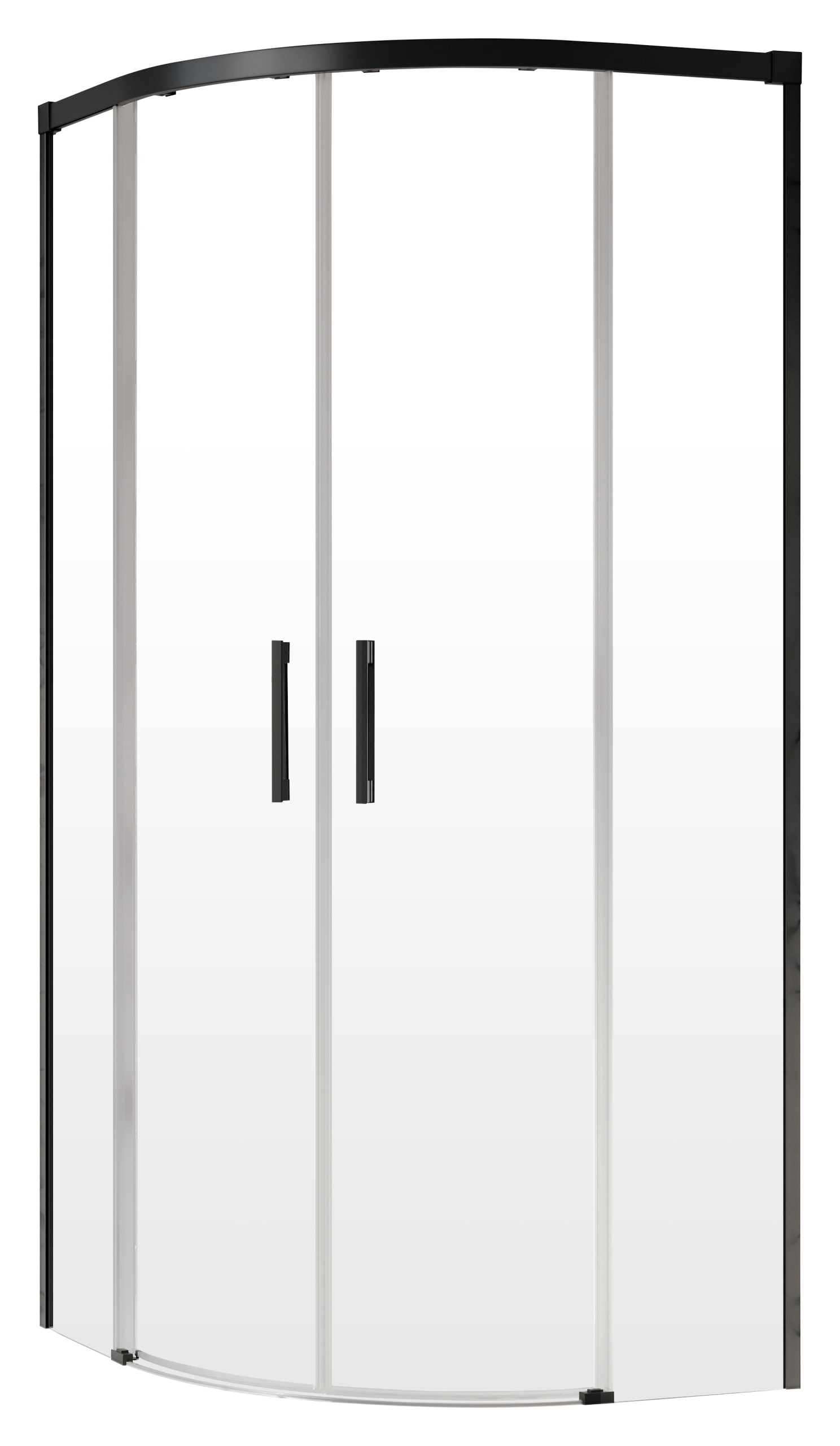 Предмет продажи — душевая кабина полукруглая с двустворчатыми дверцами Idea Black PDD 120х80х200,5 в прозрачном стекле без душевого поддона. Стандартная кабина выполнена из прозрачного стекла.
