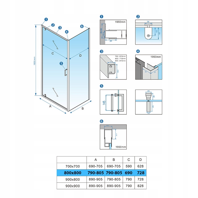 Душевая кабина квадратная 80х80 KZ04B BLACK, стекло 6мм