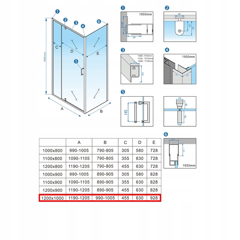 КАБИНА ДУШЕВАЯ KZ07D 120x100 СТЕКЛО 6ММ ЧЕРНАЯ ОТКРЫТИЕ ПРЯМОУГОЛЬНОЕ