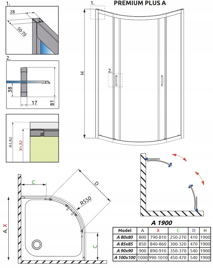 Продукты серии Premium Plus можно монтировать как на душевой поддон, так и непосредственно на пол. .