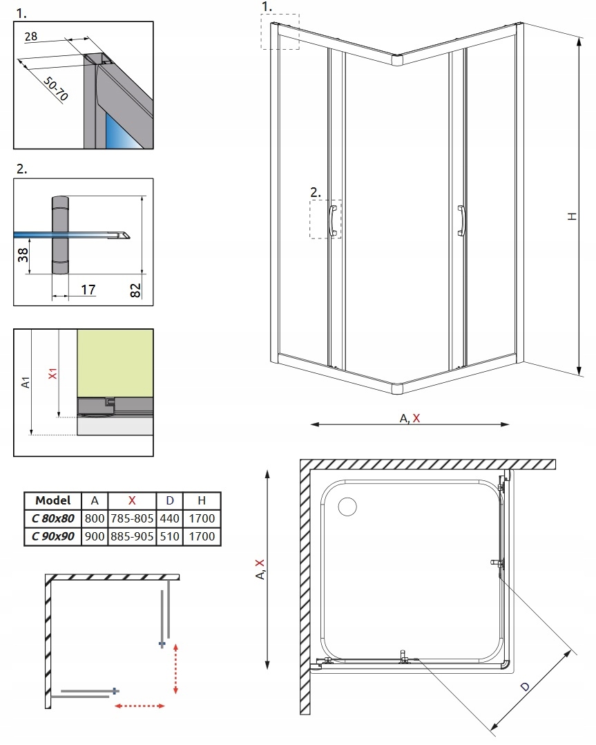 Квадратная кабина с раздвижными дверями Premium Plus C 90x90x170 от: