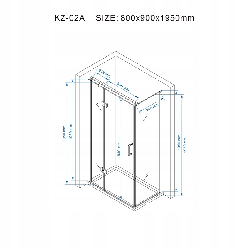ПРЯМОУГОЛЬНАЯ ДУШЕВАЯ КАБИНА KZ02B CHROME 100x80 CM