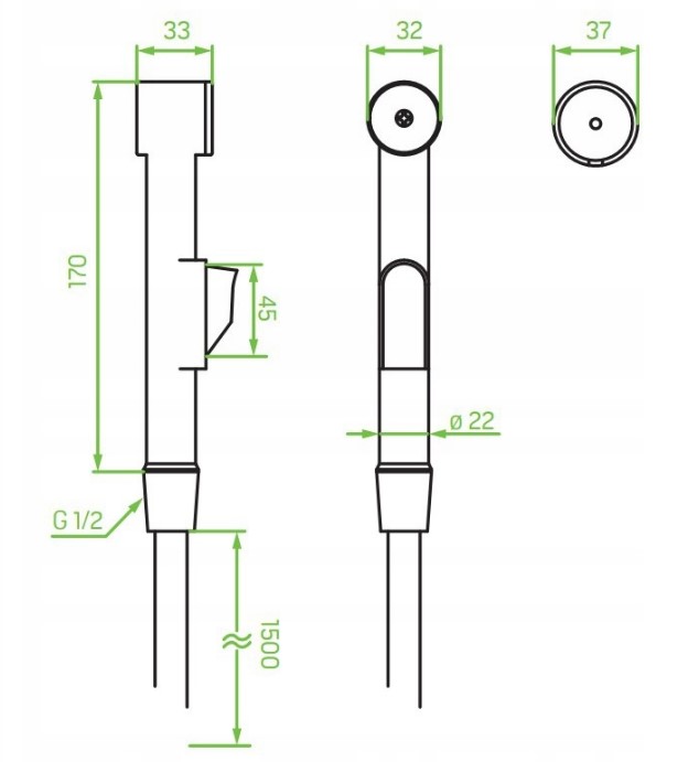 Душова лійка BIDETTA СТОП ФУНКЦІЯ + шланг