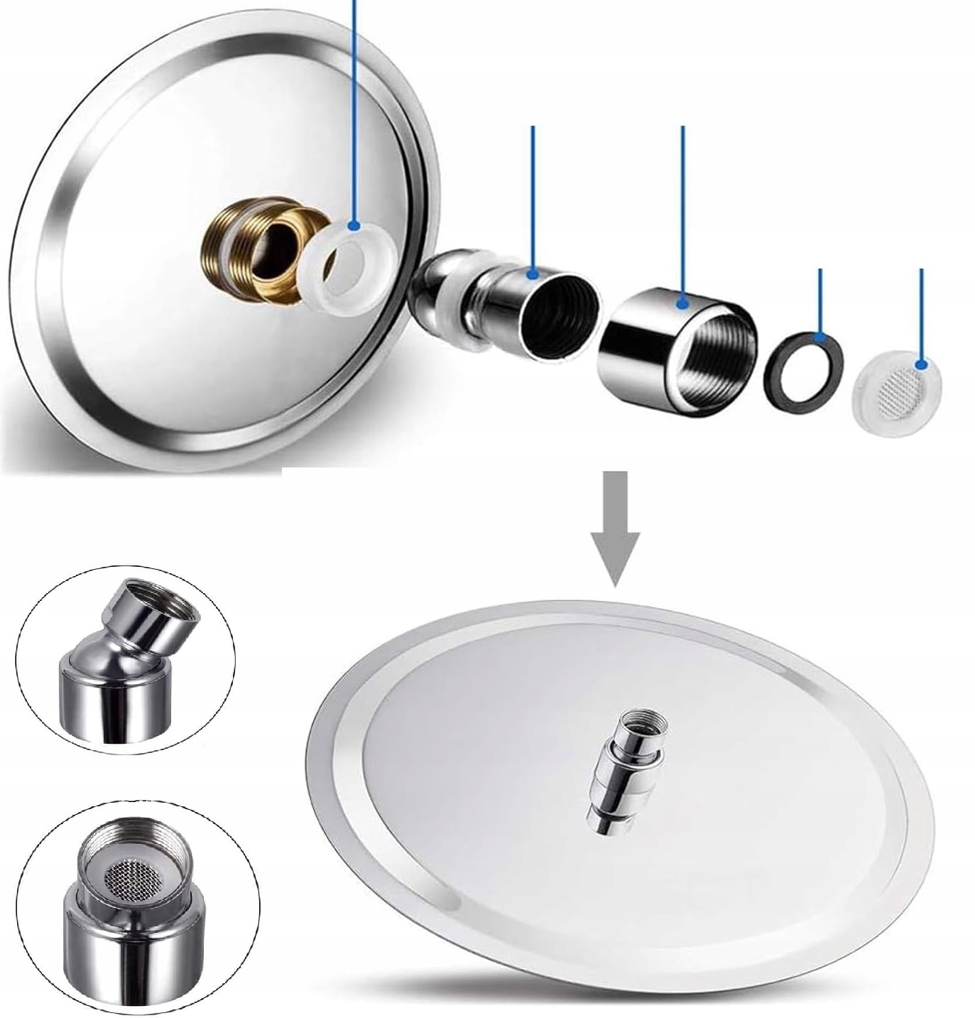 Легкая сборка без инструментов. Подходит для всех стандартных душевых кронштейнов. Регулируемый угол наклона позволяет настроить душевую лейку под любой угол. Легкий и тонкий, прочный и долговечный.