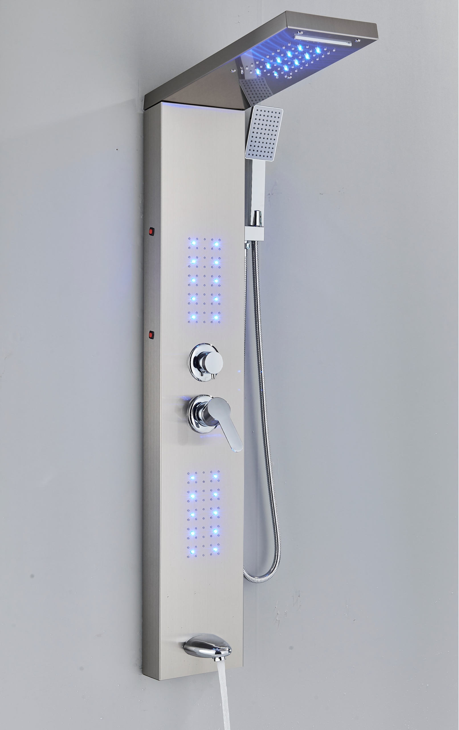 Эксклюзивная, стильная и современная душевая панель с гидромассажем, водопадом, тропическим душем, изливом и светодиодами