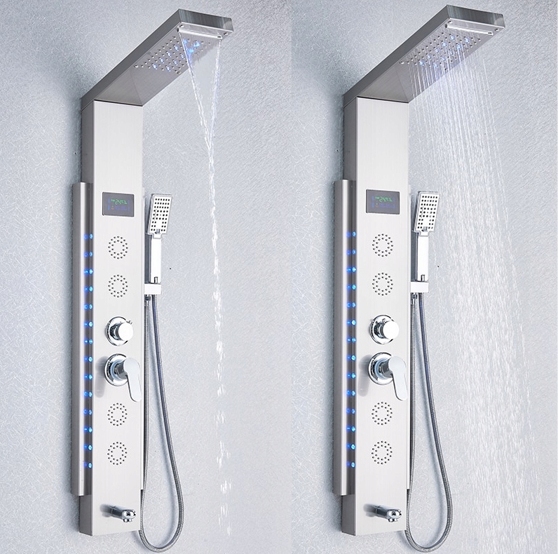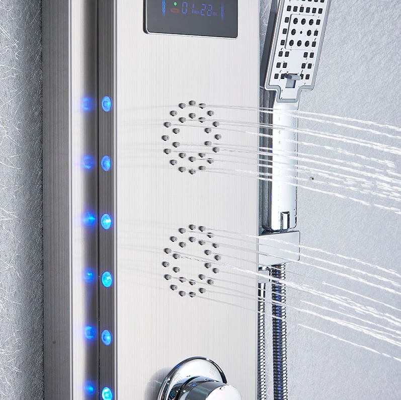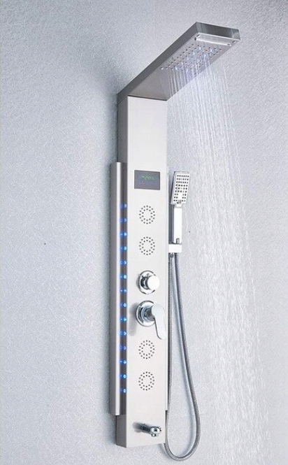 Эксклюзивная, стильная, современная душевая панель с гидромассажем, водопадом, тропическим душем, дисплеем и светодиодами.