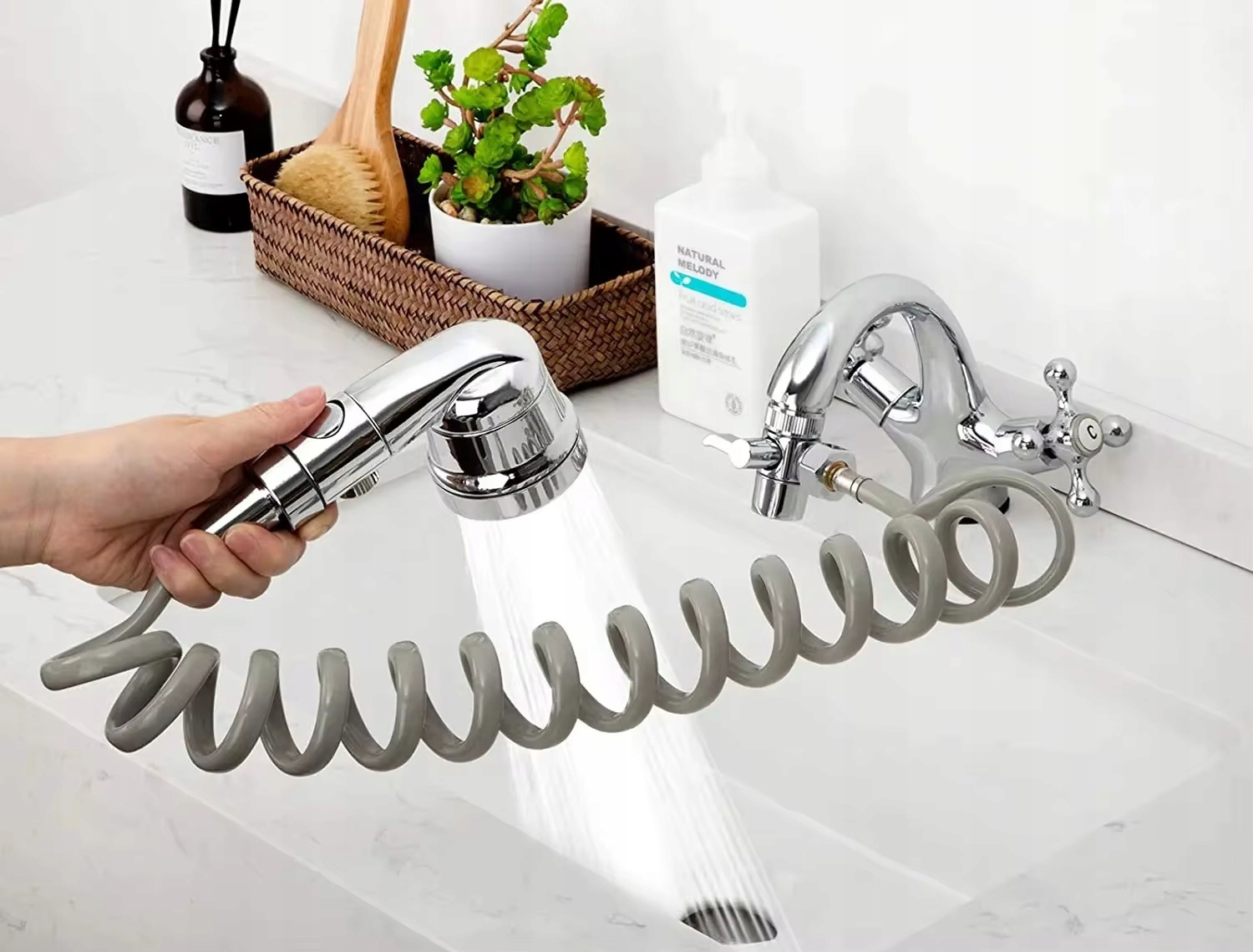 Просто снимите аэратор с крана и установите новый трехходовой клапан. Затем установите шланг, подключенный к держателю душа, на стене в боковом выпуске. В комплект также входит настенный держатель для хранения трубки. Нижняя часть клапана рассчитана на обычную проточную водопроводную воду, поэтому установка удлинителя для воды в ванной не влияет на расход воды в обычной раковине. Благодаря кнопке остановки на трубке мы можем удобно выключать струю во время мытья головы.