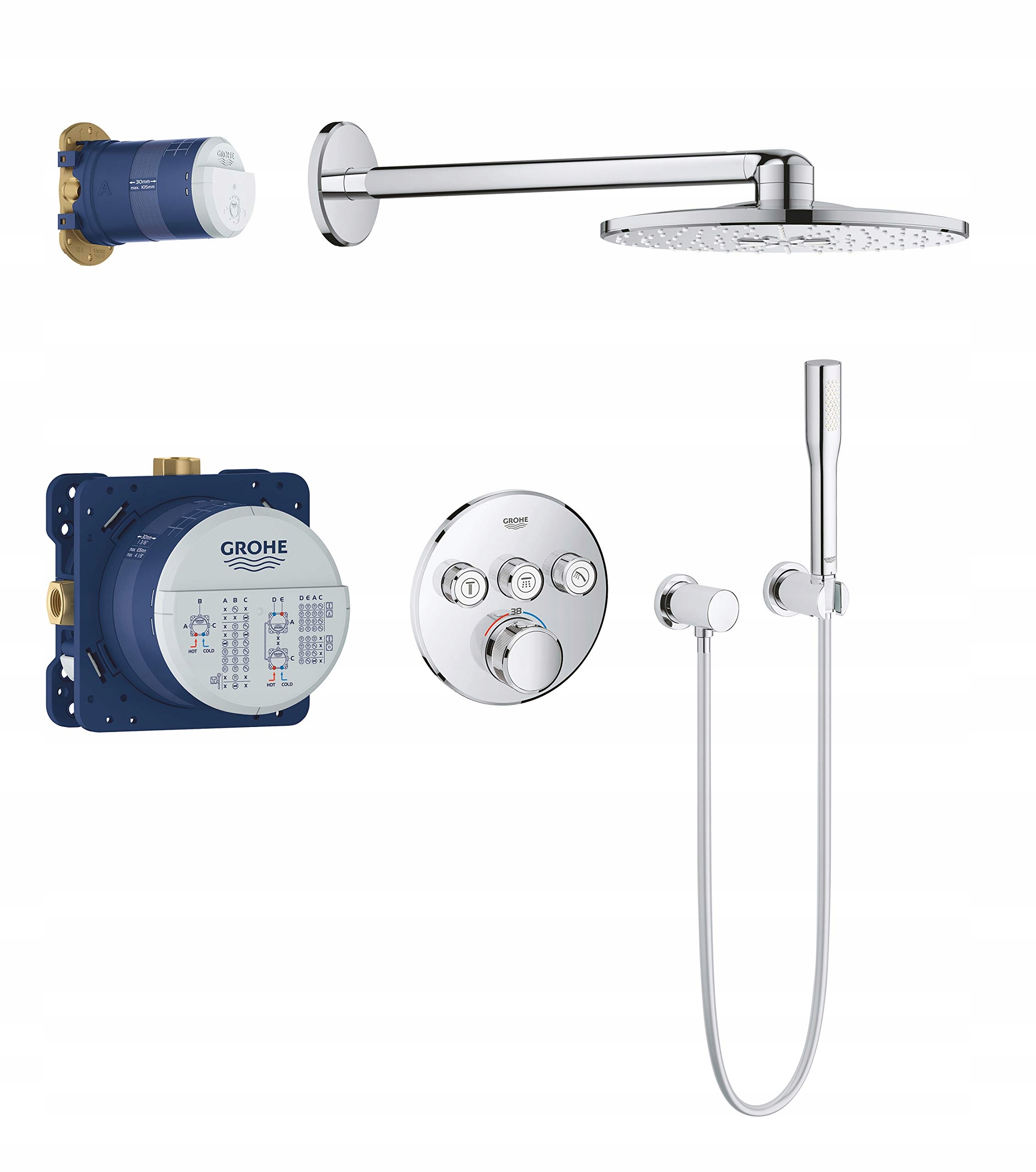 - Компоненты в комплекте: Душевая система скрытого монтажа Grohtherm SmartControl с Rainshower 310 SmartActive