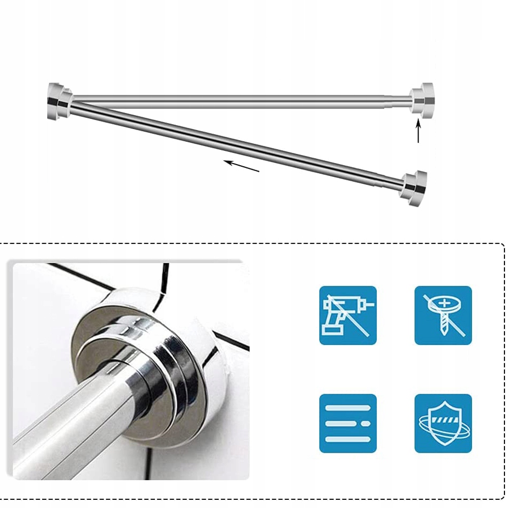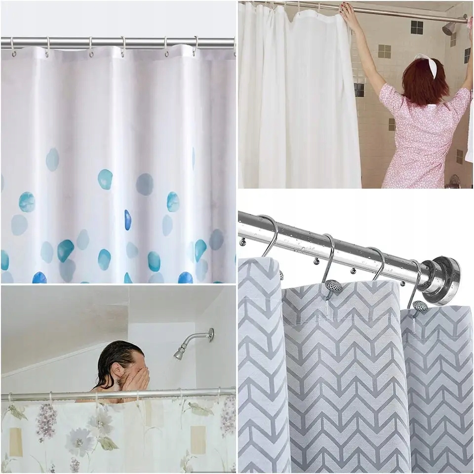 - Встроенная пружина телескопического штанги для душевой занавески и несъемная скользящая резиновая поверхность на конце может создавать огромное натяжение и обеспечивать плотное прилегание.