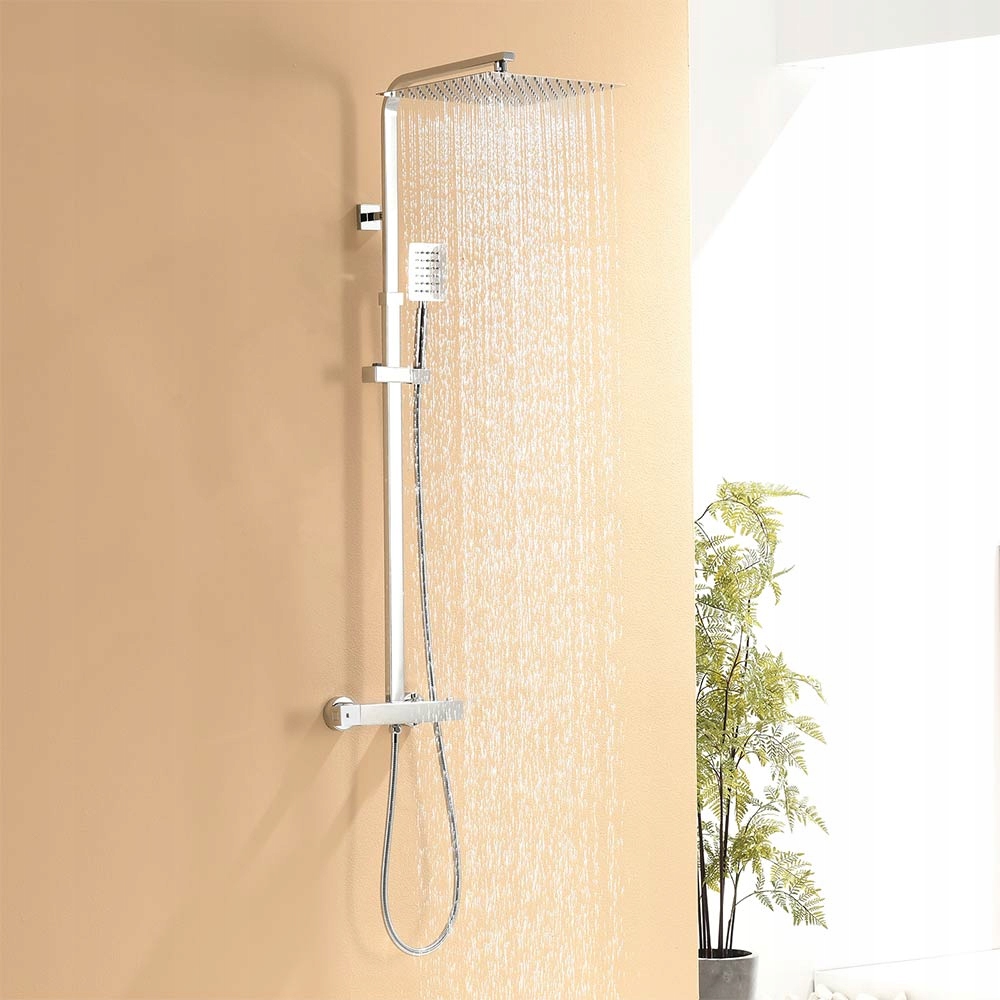 Душевой набор из нержавеющей стали с термостатом, регулируемая высота 96,5-130 см.