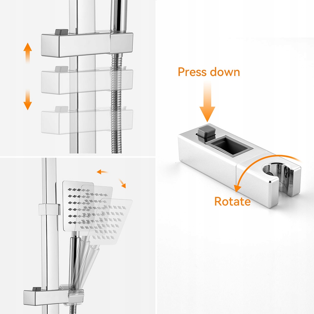 ✅ Свободно регулируемая высота держателя душевой лейки с помощью зажима