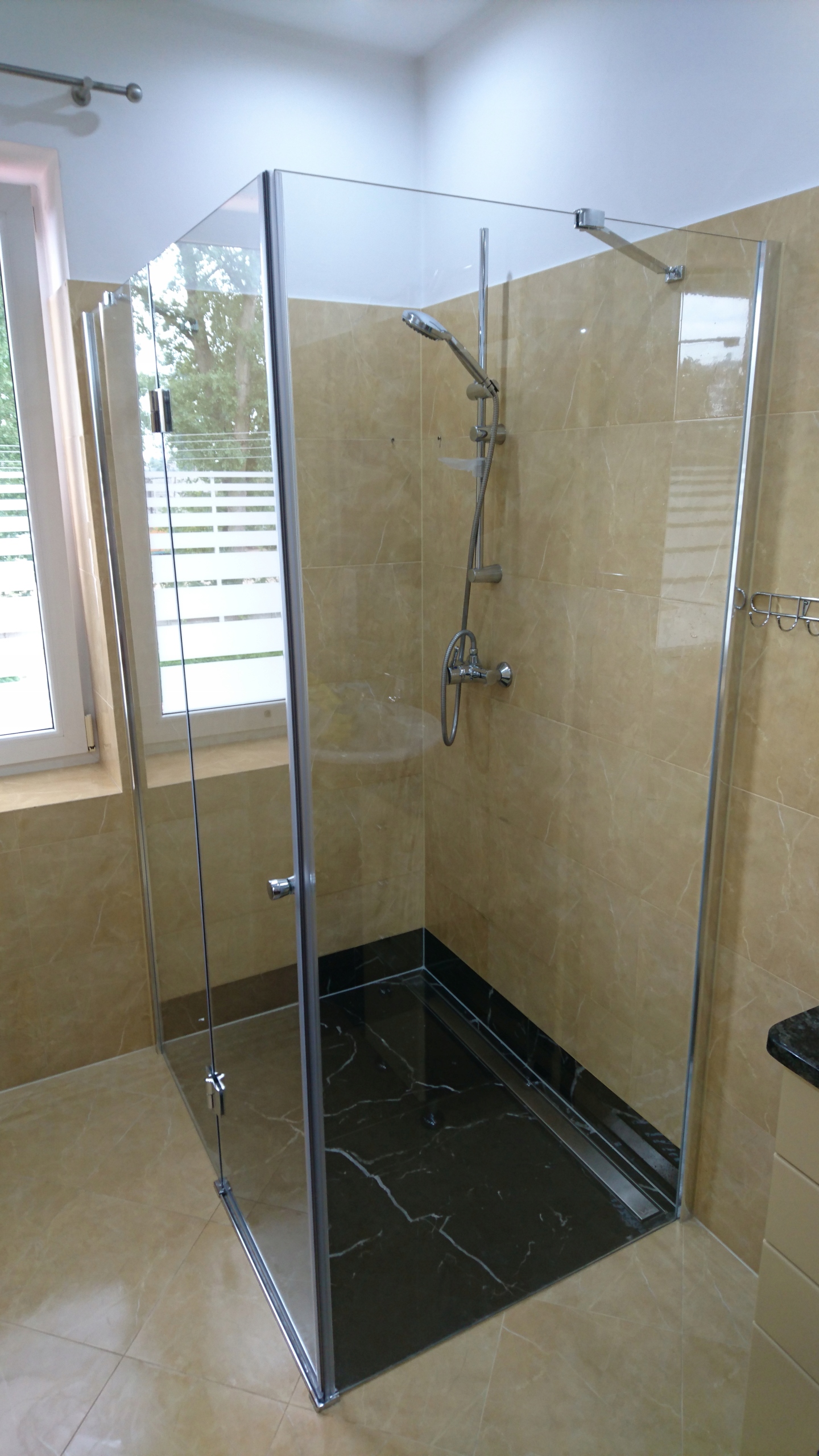 Душ без традиционного поддона минимизирует риск поскользнуться при входе и выходе. Он придает ванной комнате элегантность и шарм. Можно не опасаться, что «пластмассовый» поддон со временем потемнеет.