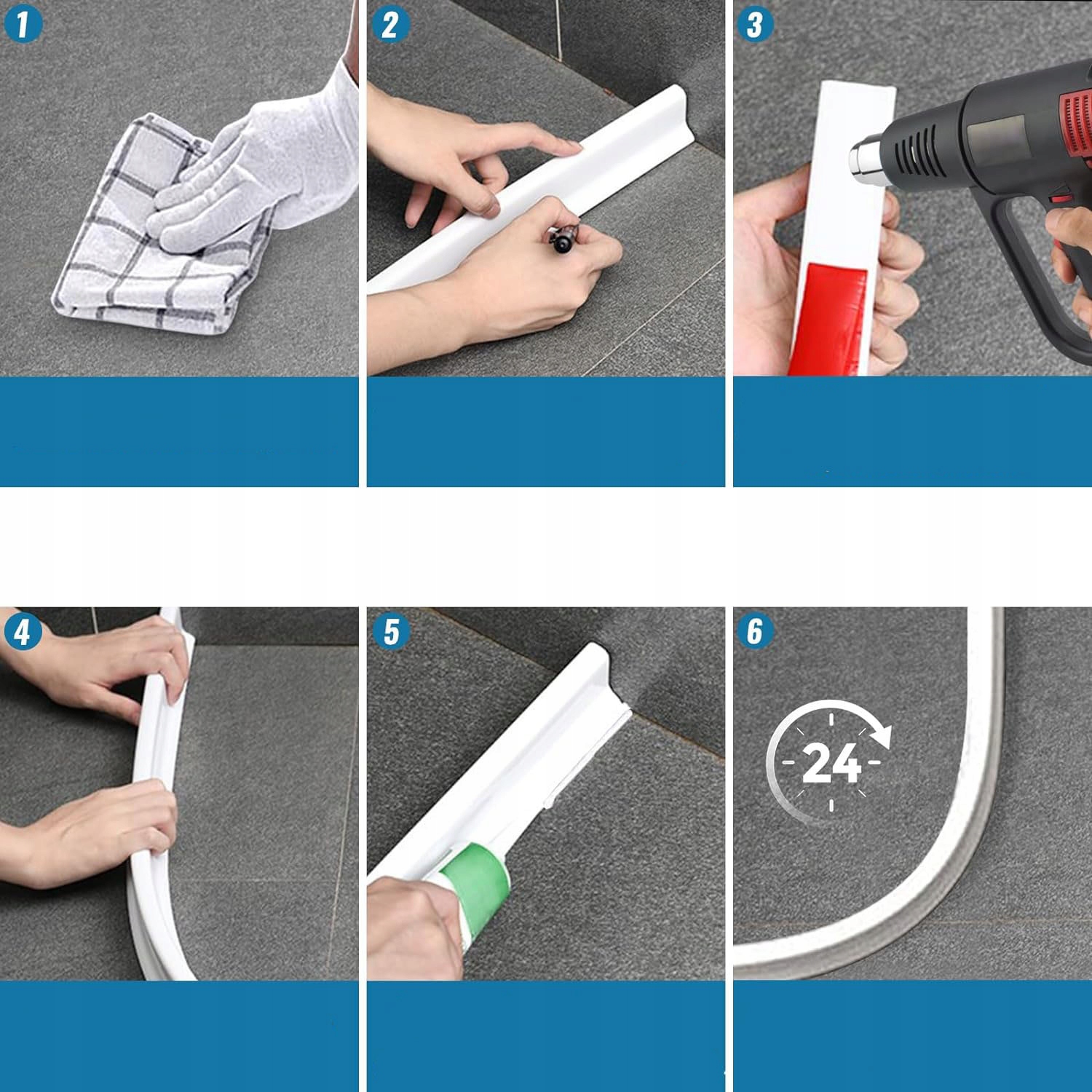 🚿🚿🚿【Улучшенный водный барьер】 Барьер душевого порога изготовлен из силикона. Он безопасен и устойчив к коррозии, нагреву и износу. Он мягкий и гибкий, легко сгибается и создает различные формы для универсального использования и применения. Его можно легко обрезать до необходимой длины.