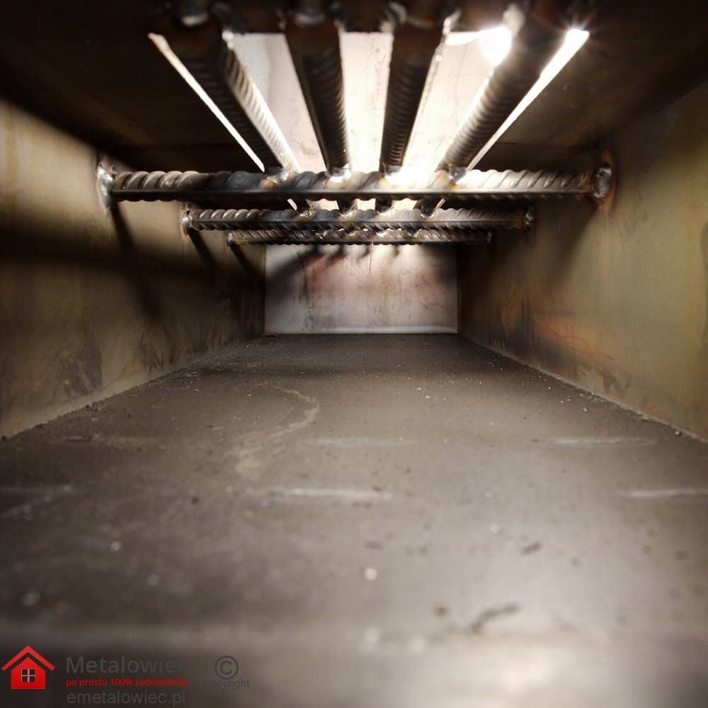 Очень большая и вместительная камера сгорания 100 х 55 х 45 и решетка по всей длине камина гарантируют эффективное сгорание топлива и высокий тепловой КПД. Стальная решетка сварена из армированного прутка диаметром 14 мм, армированного поперечными прутьями. Печь изготовлена из толстого листового металла, камера сгорания - 5 мм, корпус, ножки, элементы конструкции - 3 мм.
